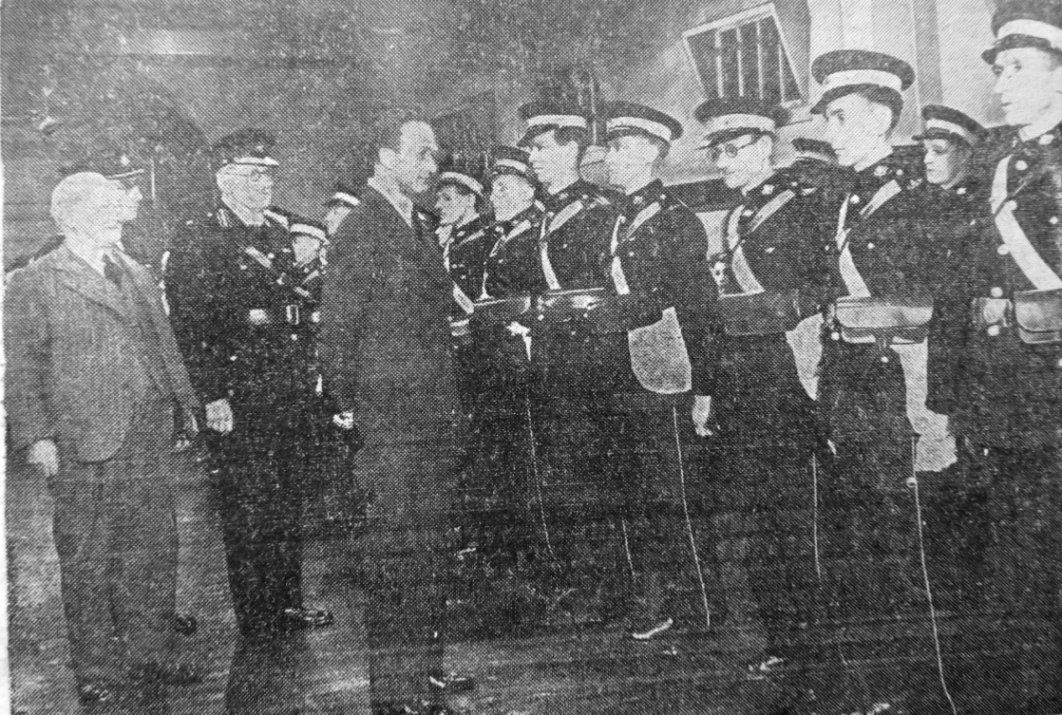 The three contingents were inspected by Mr. O. J. Philipson, (Chairman of Directors, Manvers Main Collieries, Ltd., and President of the Corps), accompanied by Mr. A. T. Thomson (director), Assistant Commissioner Huey, and Corps. Supt. E. Soar.