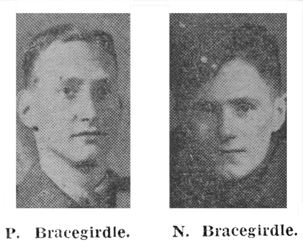 Lieut. Bracegirdle was born at Wath, his father, Mr. James Bracegirdle, being then employed at Manvers Main Colliery. Later, Mr. Bracegirdle was an overman at Brodsworth, and is now under-manager at a colliery at Donnington Wood, Shropshire. Lieut. Bracegirdle left Victoria Road, Wath, to go to Maltby Grammar School, and later was a pupil at Worksop and Doncaster Grammar Schools. He won a County Major Scholarship at Doncaster, and graduated B.A. at King’s College, Cambridge. He had specialised in mathematics with a view to taking up an industrial career when he went into the Army, passing from the University O.T.C., to an O.C.T.U.