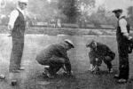 The markers measuring the last end in the Hague Bowls Club final between Bolton and Wath...